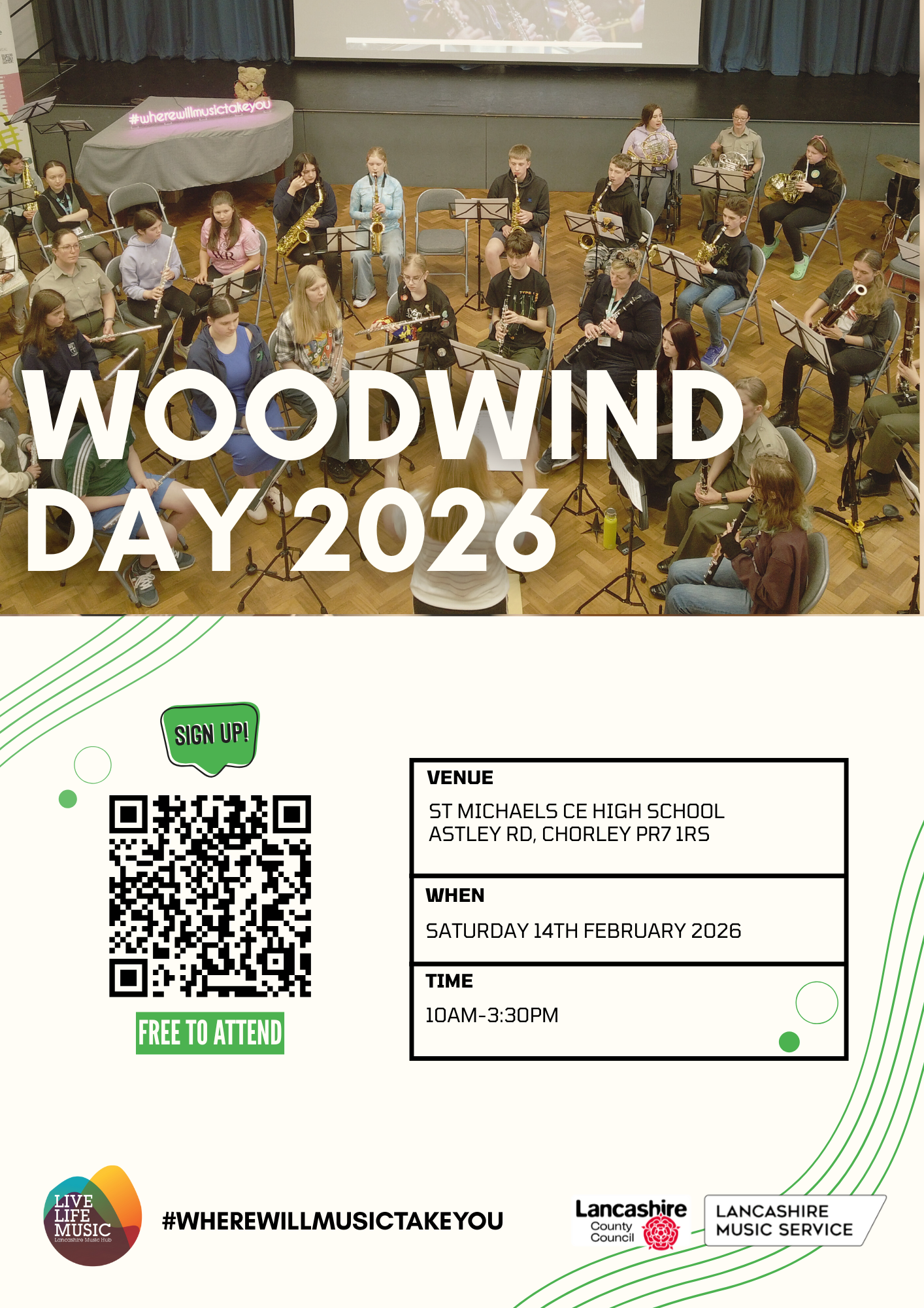 🚨Woodwind Day is back for 2026!🪈🎷🎶Young Woodwind players 18 and under, beginners to advanced, are invited to join us once again for our instrument day. The day will consist of workshops, masterclasses, performances and more!This year we are joined by Yamaha Artist, Benjamin Mellefont, Principal Clarinettist of The London Philharmonic Orchestra! Can we top last years numbers? Please share far and wide! 📆14th February 2026, 10.00am – 3.30pm📍St Michaels CE High School, Chorley, PR7 1RR✍️ Click uklancashire.speedadmin.dk/registration?signupSchoolID=0#/Course/918/0/7242/0 to sign up! ✍️Never played before but want to try? Come and join our ‘First notes’ sessions as part of the day! 🎺📯first note session times will be emailed out to sign ups during the week before. 👀Watch out for more instrument days coming up! #WhereWillMusicTakeYou #yamahamakewaves ... See MoreSee Less